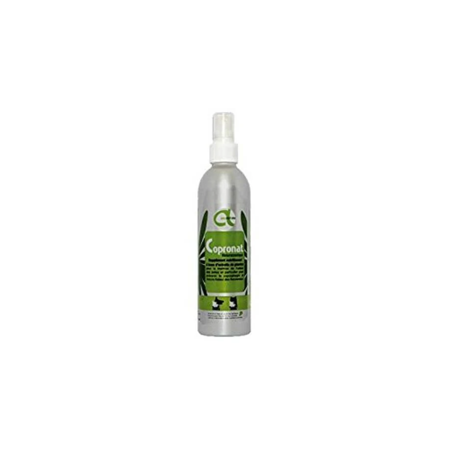 Copronat modifie les odeurs des excréments. C’est un produit naturel à base de Yucca schidigera, une plante qui pousse dans les déserts du Sud de la Californie et du Mexique. Il s’agit d’un produit liquide à vaporiser sur la nourriture de l’animal chaque jour.