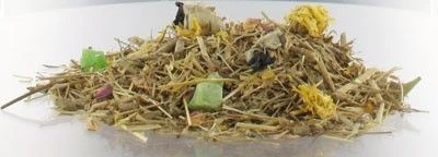 Aliment équilibré contenant des herbes et plantes dont les actifs sont connus pour leurs effets positifs sur le fonctionnement du système digestif du lapin et par conséquence pour son bien-être physique.