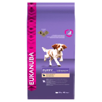 Les croquettes Eukanuba Puppy Junior grande race à l’agneau et au riz sont adaptées aux chiots de grande race de 1 à 12 mois à la peau ou à l’estomac sensible.