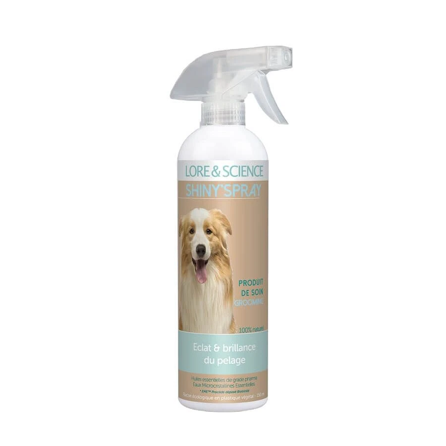 Le Spray Shiny de Lore & Science est un dĂ©mĂŞlant et lustrant pour chiens.Â