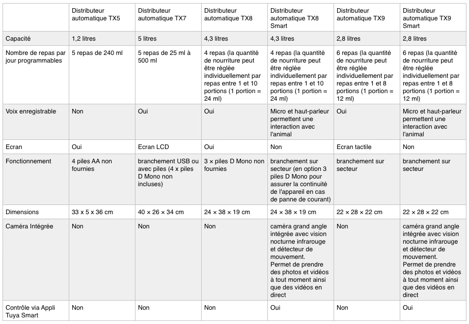 Ce distributeur vous permettra de programmer jusqu’à 6 repas par jour avec des portions de 180 ml.