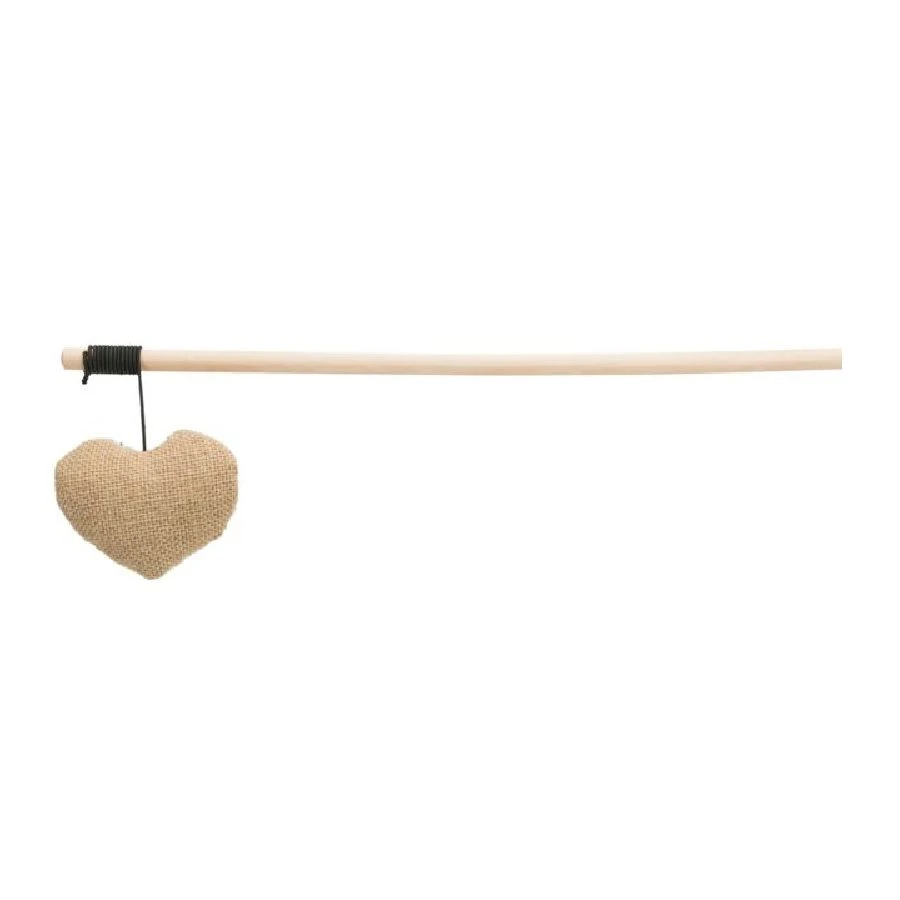 Cette canne à pêche avec un coeur en toile de jute et à petits motifs colorés fantaisie, sera un jeux attractif pour votre matou. Elle contient de l’herbe à chat pour offrir un bon moment, à la fois euphorisant, puis relaxant par la suite. Le coeur est en matière bruissante/craquante, ce qui inspirera l’instinct de chasse du chat, permettant ainsi un jeu ludique.